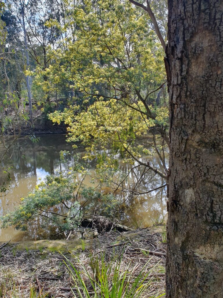We follow the edge of the river